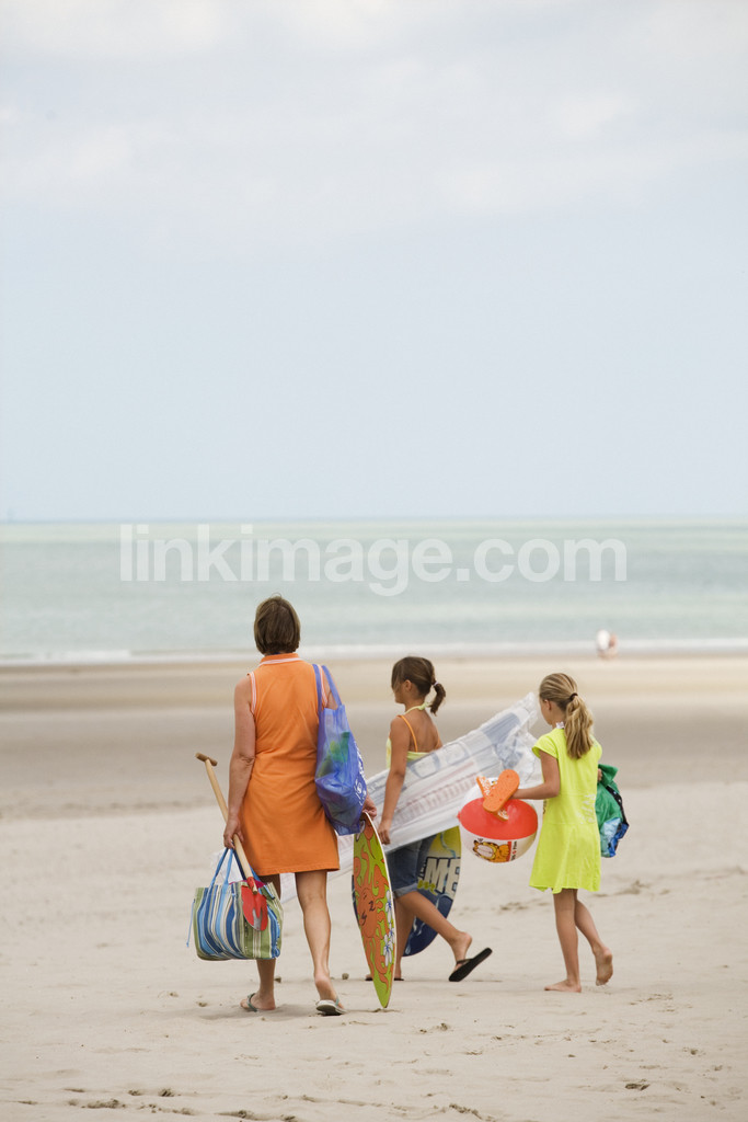 holiday, excursion, shore, family, children, mother, female, girl, summer, sea, bathing