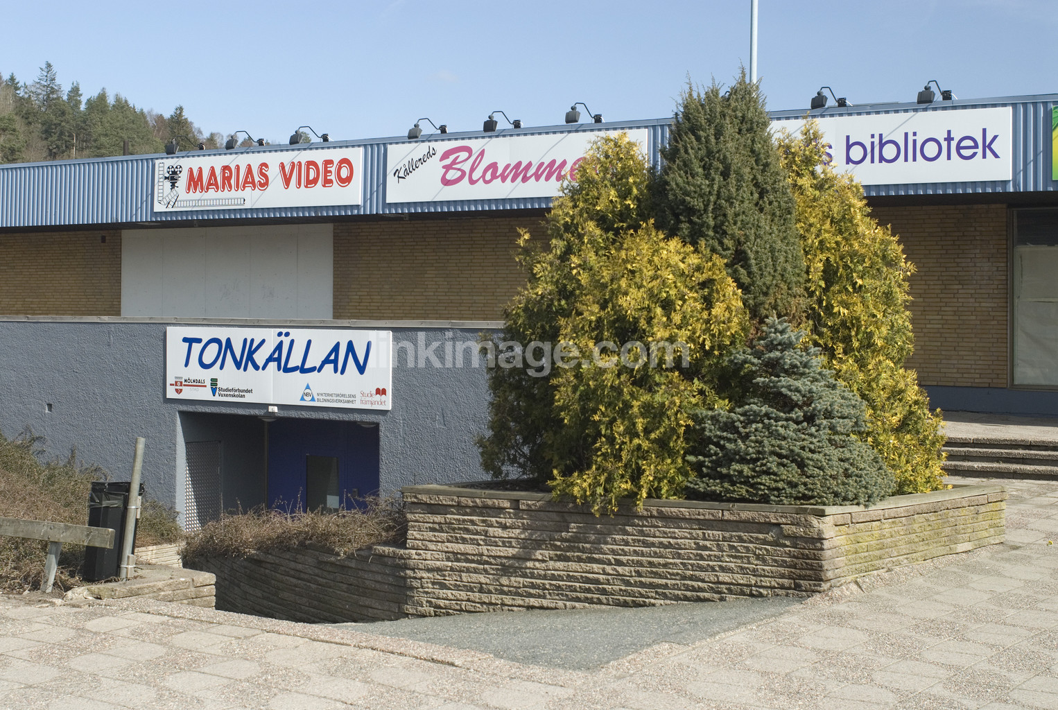 - advertising, signs, suburb, center, plants, planted, tree