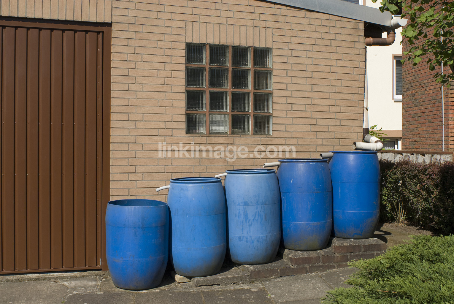 flow, system, collect, save, irrigate, garden, drums, blue, end, house, lodging