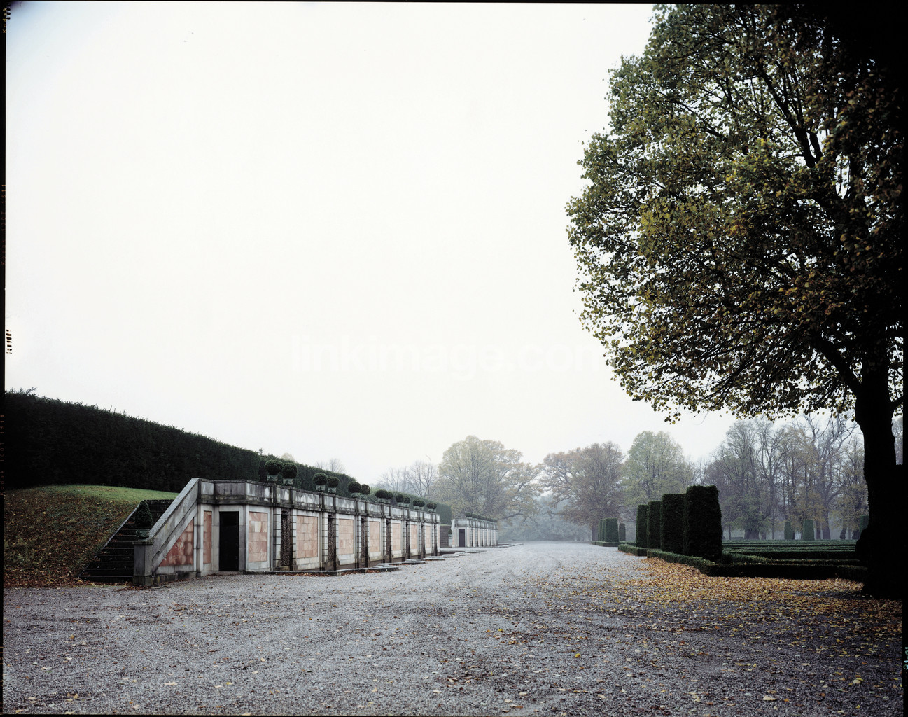 wall, pink, park, castle park, garden, tree, staircase, gravel, land, leaf, fall, sky, fate