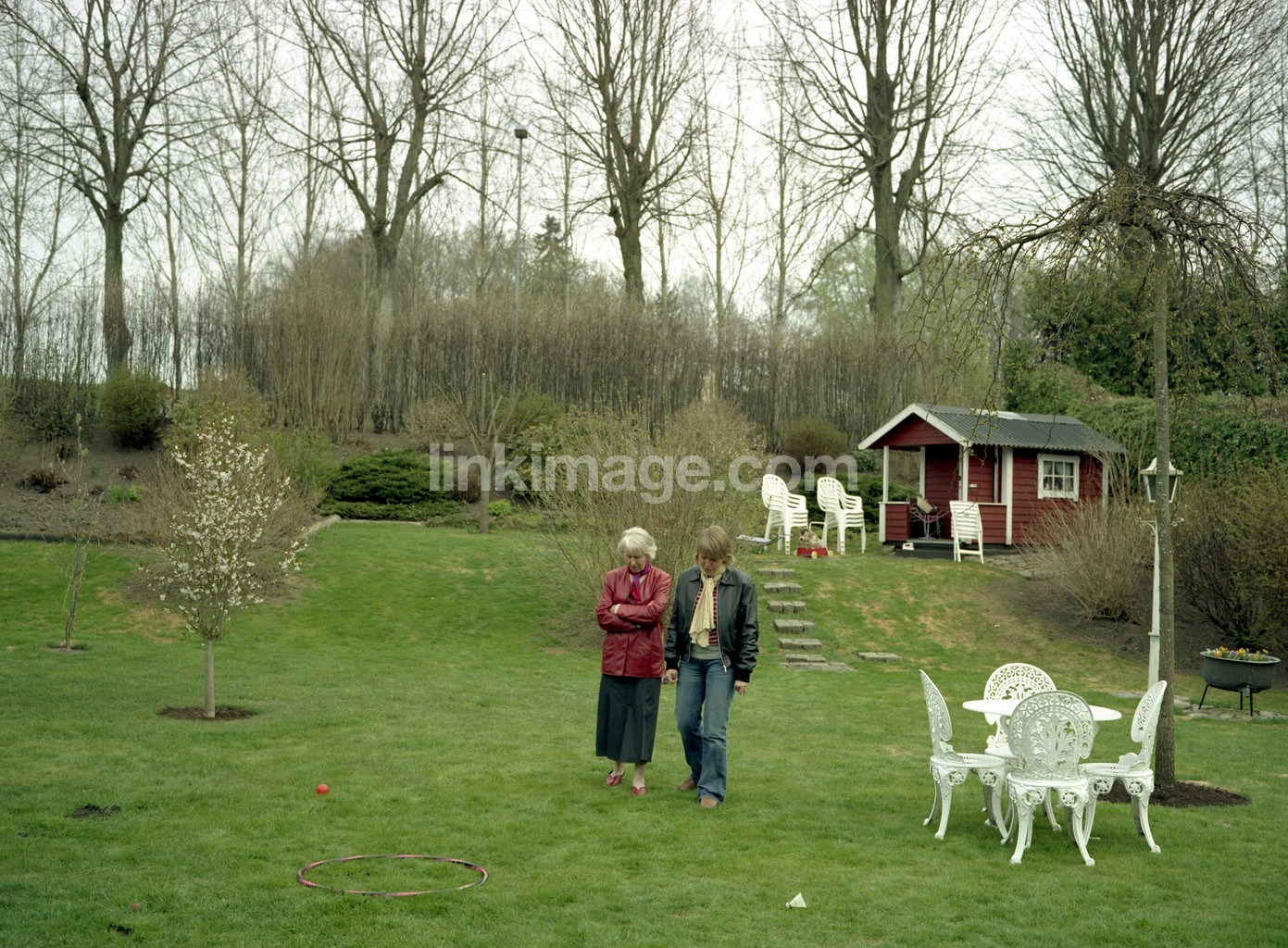 prevent, female, couple, family, garden, lawn, blank, playhouse, tree, call, home