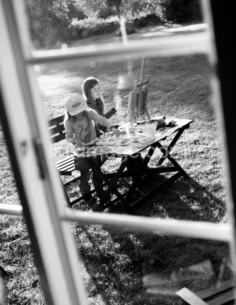 children, siblings, daughter, girl, family, summer, paint, hobby, plate, nature, grass, sisters