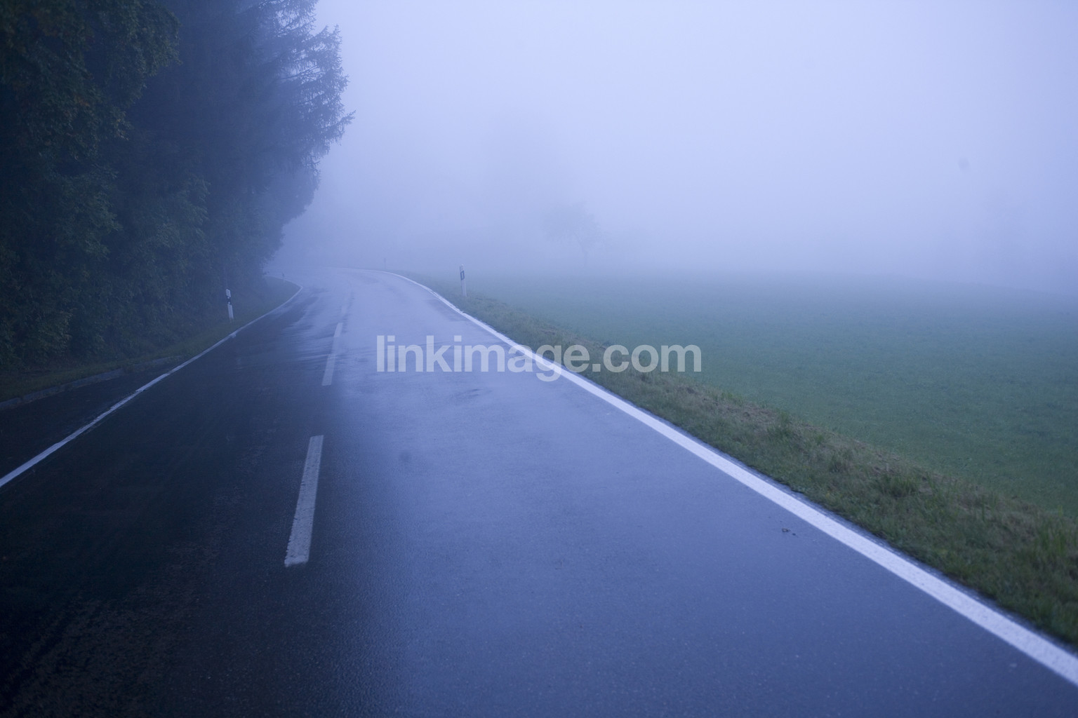 forest, road, fog, haze, drama, rain, grass, fall, weather, storm, fate