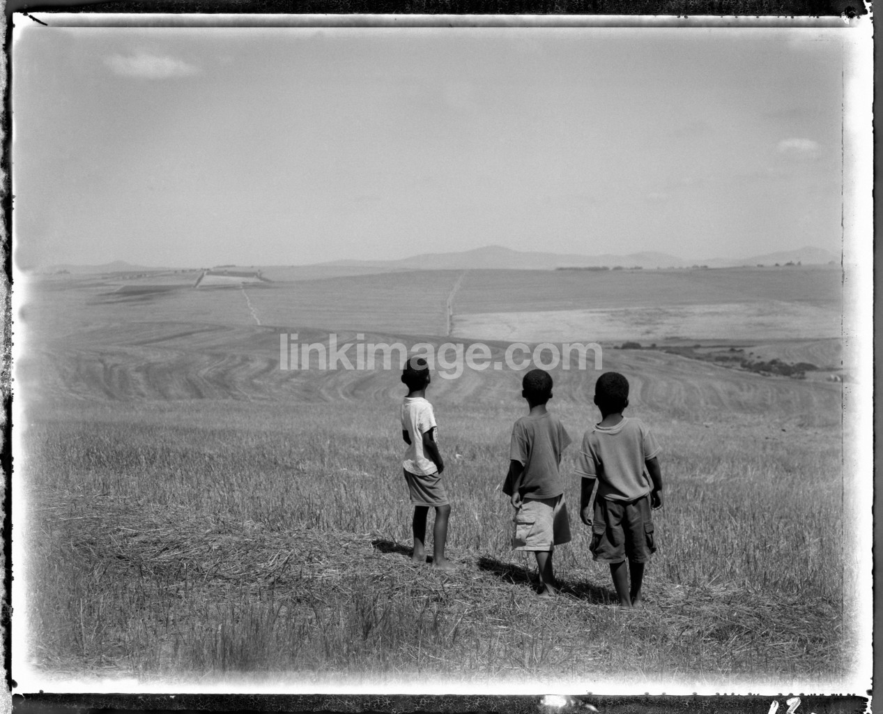 - children, nature, africa, grass, three, friends, siblings, friends, guy, boy, back, rock, views, scouts, field, go, horizon