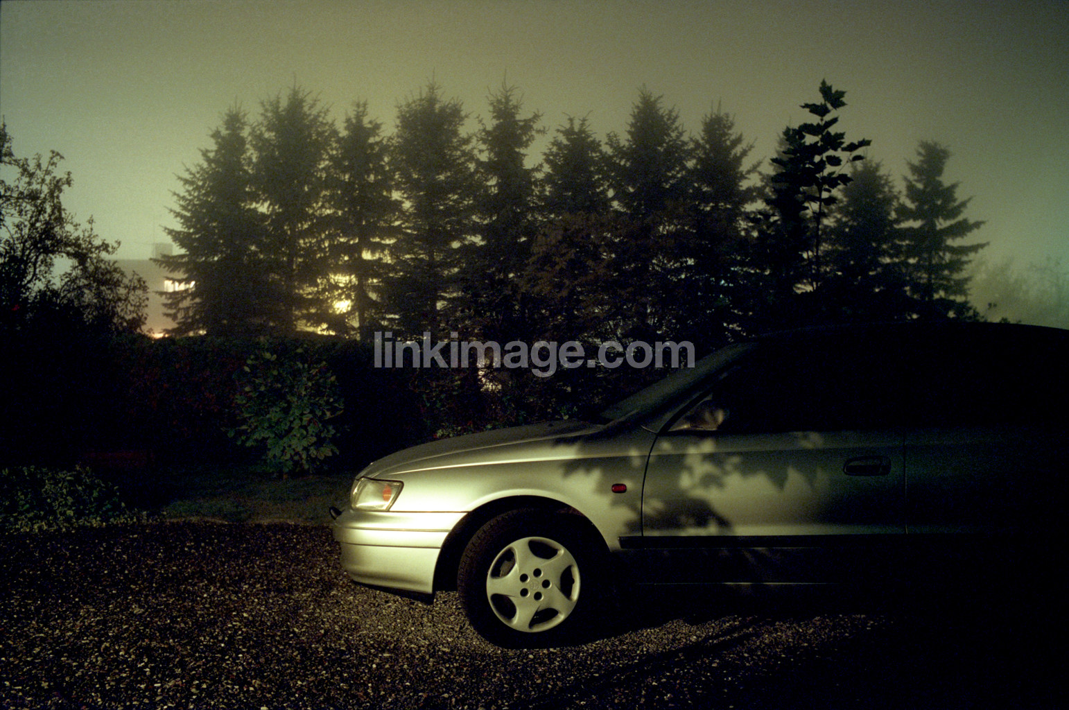 - night, car, dark, parking, firs, evening, gravel road, mystery, musk semitic