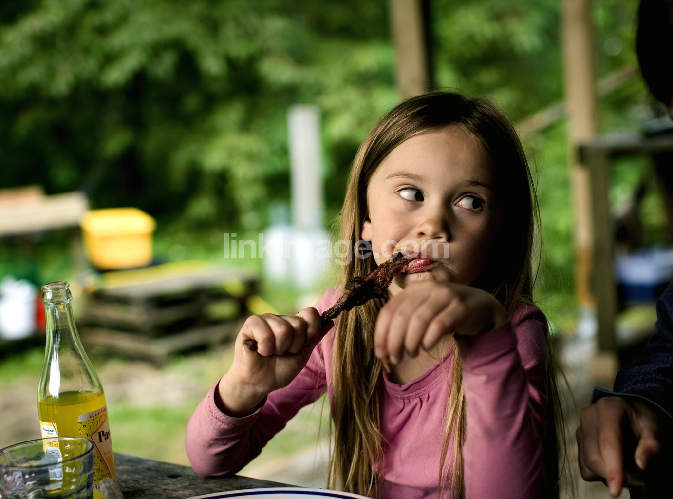 girl, eat, looking, beverage, soda, listening, smears, grills, dinner, eyes, food, summer