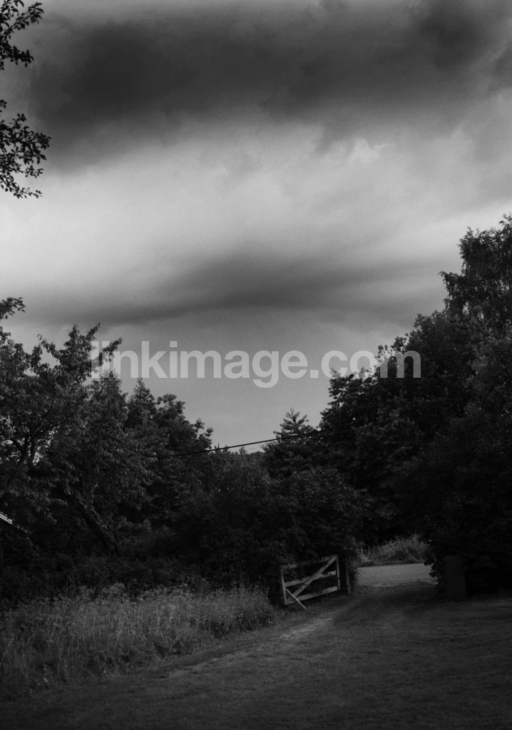 rain, fall, gate, tree, dark, cloud, nature, drama, mysteriously, storm, weather, sky, yard