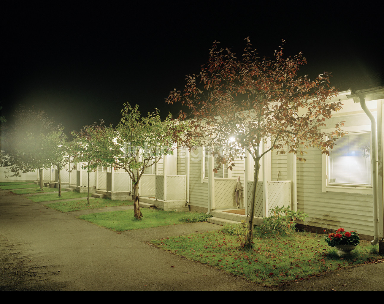 - house, night, planting, townhouse, entrance, lighting, pavement