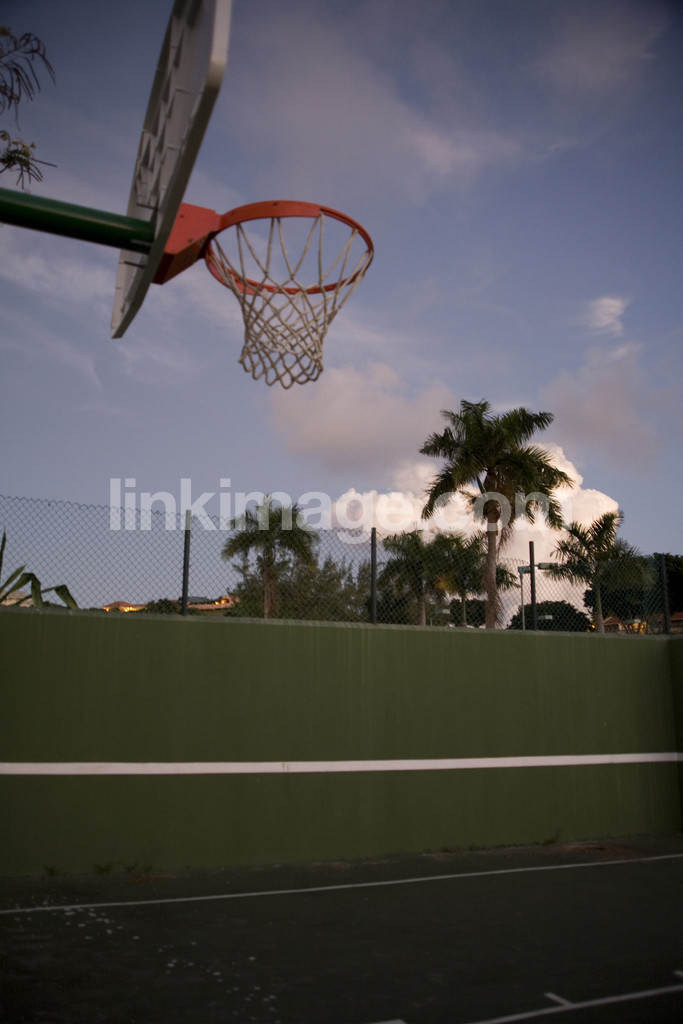 - basketball, basket, evening, palms, concrete, sky, cloud