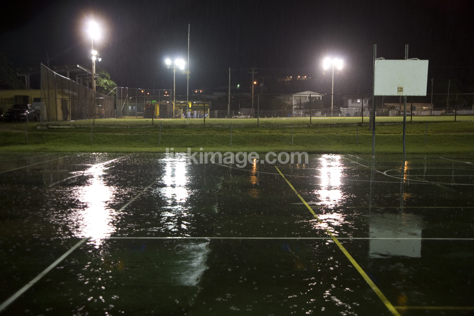 basektplan, baseball, plane, scoop, rain, evening, lights, dark
