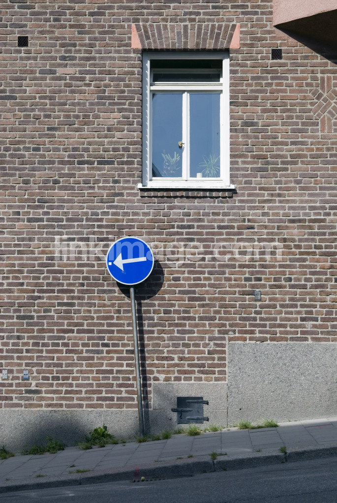 - Brick facade with traffic sign
