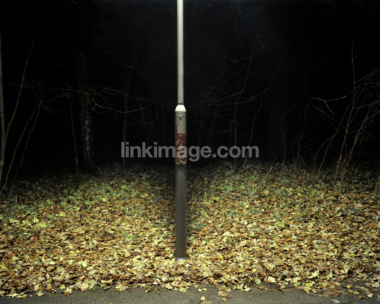 - streetlight, suburb, park, night, evening, fall, light, leaf, post, alone, dark, lit, doodle