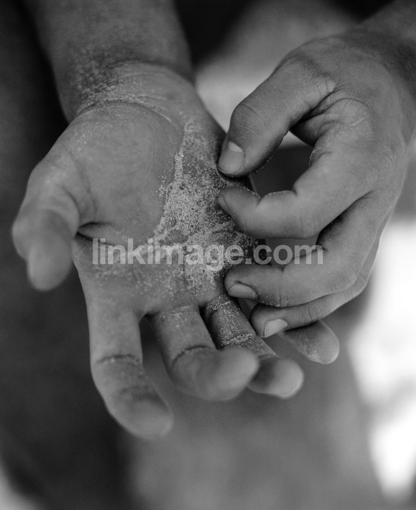 - hands, sand, gray