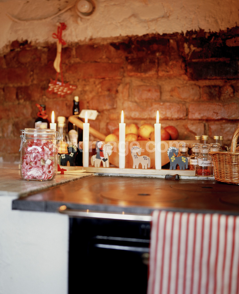 - country kitchen, july, winter, mys, interior, decoration, polka, stove, live, light, christmas spirit