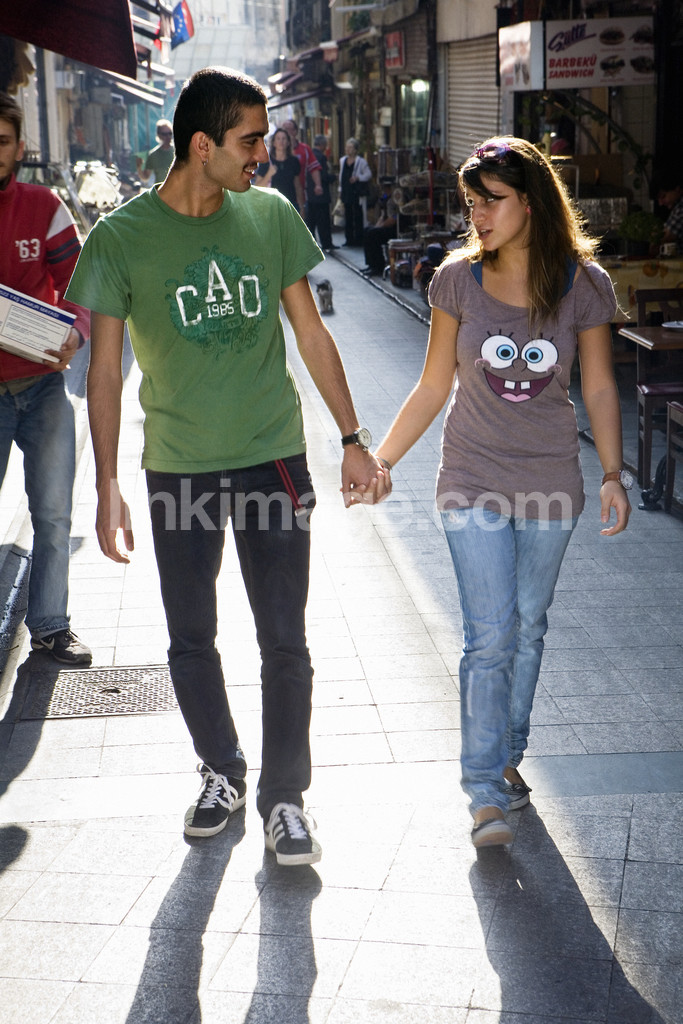 - couple, adolescents, proximity, city, street, asia, together, girl, guy, talk, conversing, go, walk
