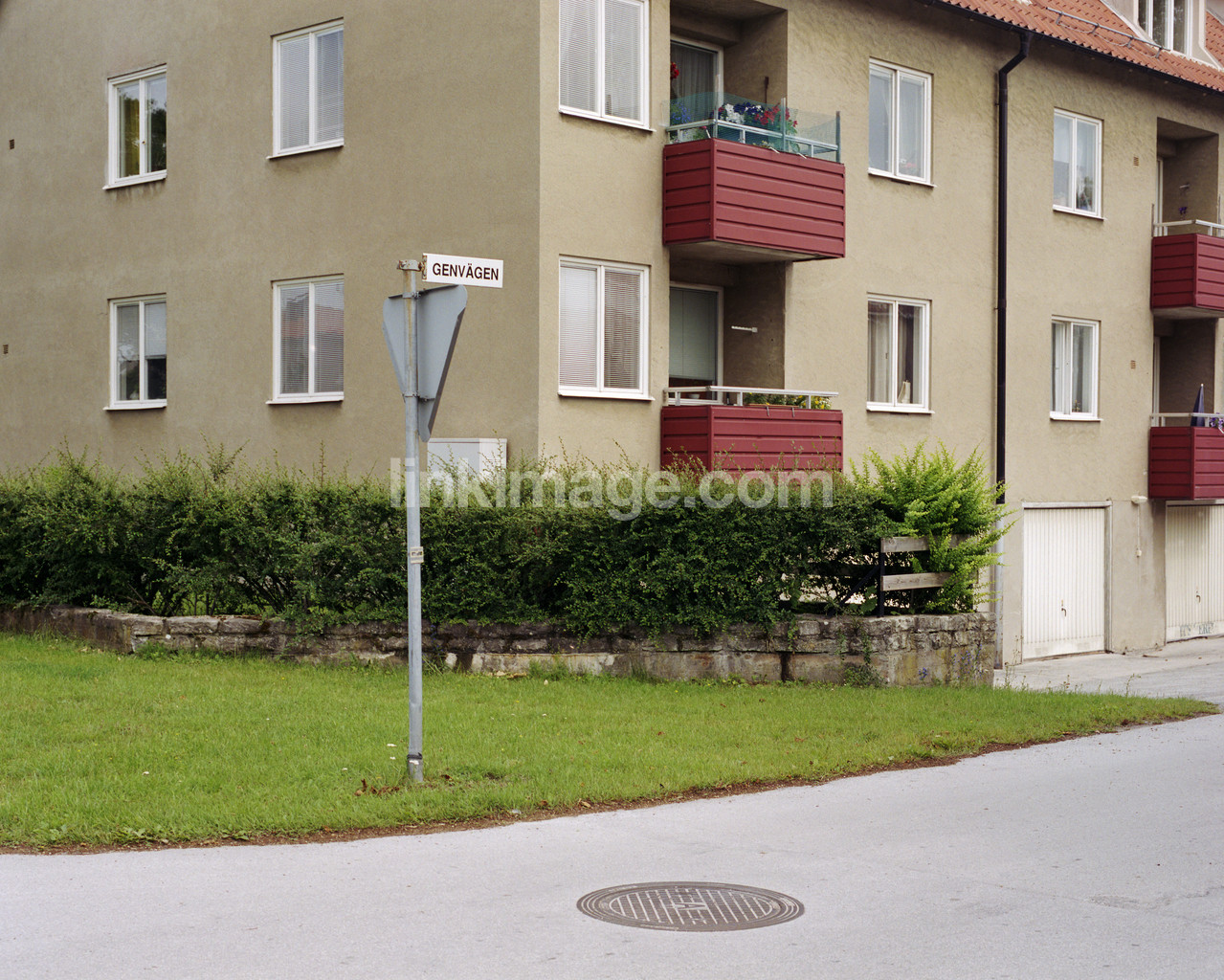 - apartment building, road, shortcut, balcony, summer, hedge, housing, traffic sign