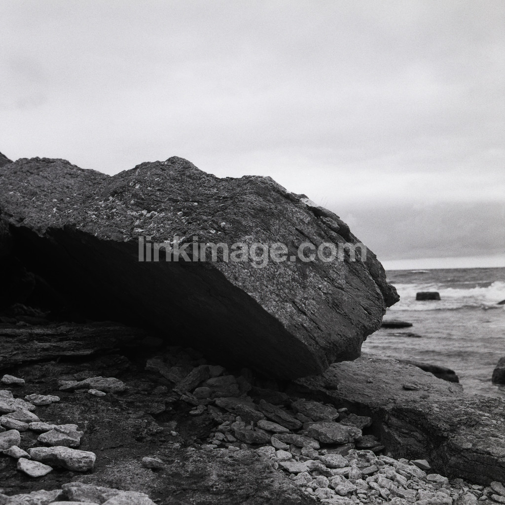 stone, coast, sea, cut, waves, boulders, water, horizon, sky, cloud, overcast