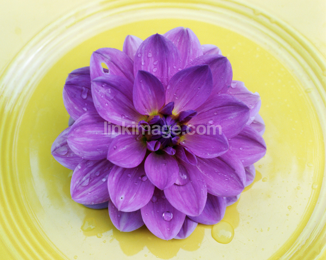 dahlia, flower, purple, water, drops, yellow, plate, summer, petal, detail, close-up, water drops