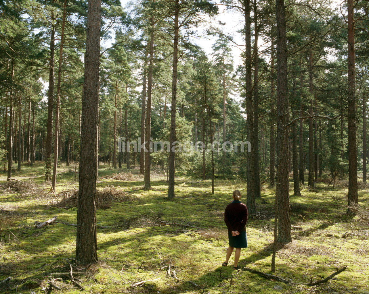 - nature, watch, forest, go, roaming, tree, greenery, pine, female, alone, walk