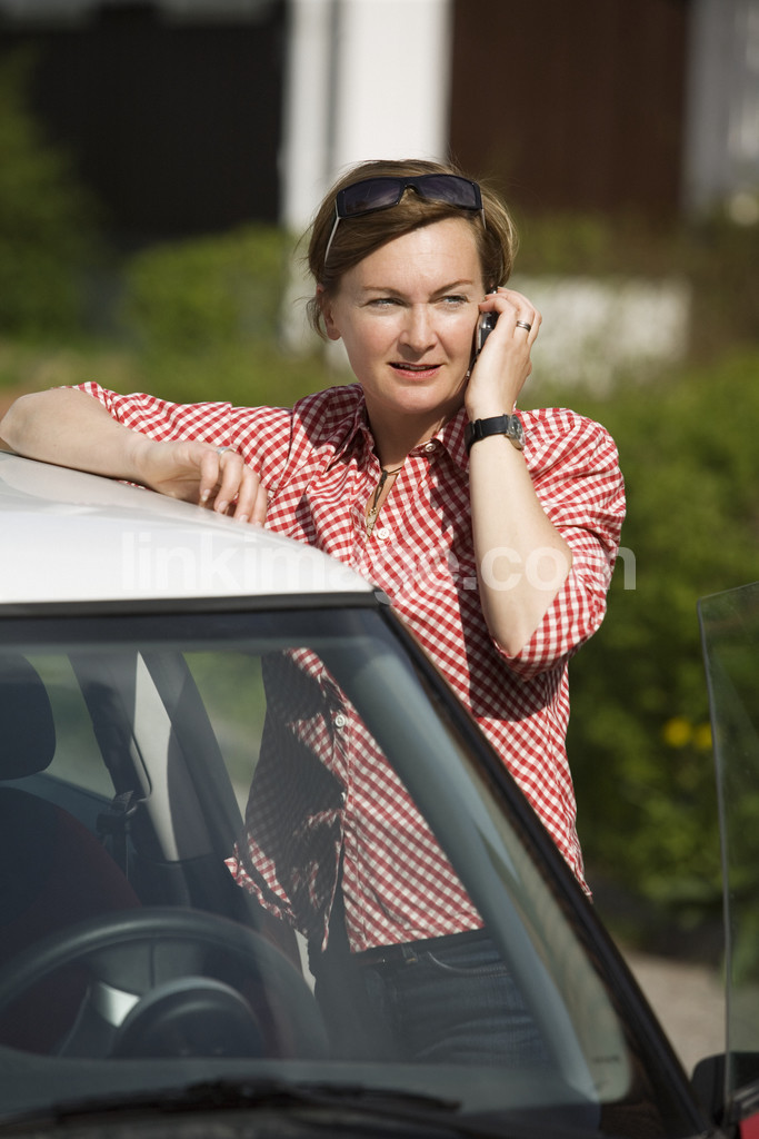 - car, telephone, girl, female, red, traffic, unscheduled, mobile, summer, spring, sunglasses