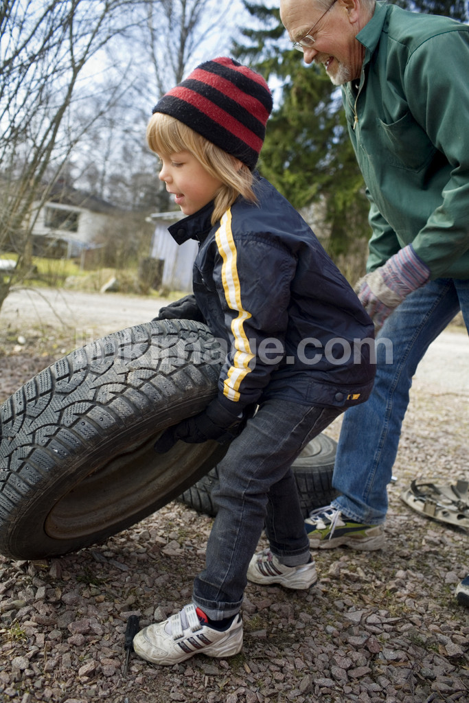 together, may, deck, older, young, children, help, teamwork, spring, out, car, wheel, boy, male
