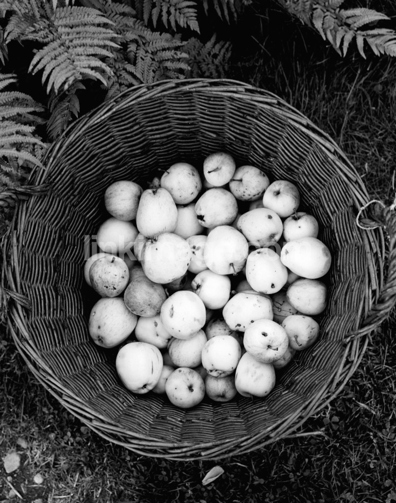 apple, basket, grass, fern, fruits, fall, pick, picking, bushes, plants, leaf