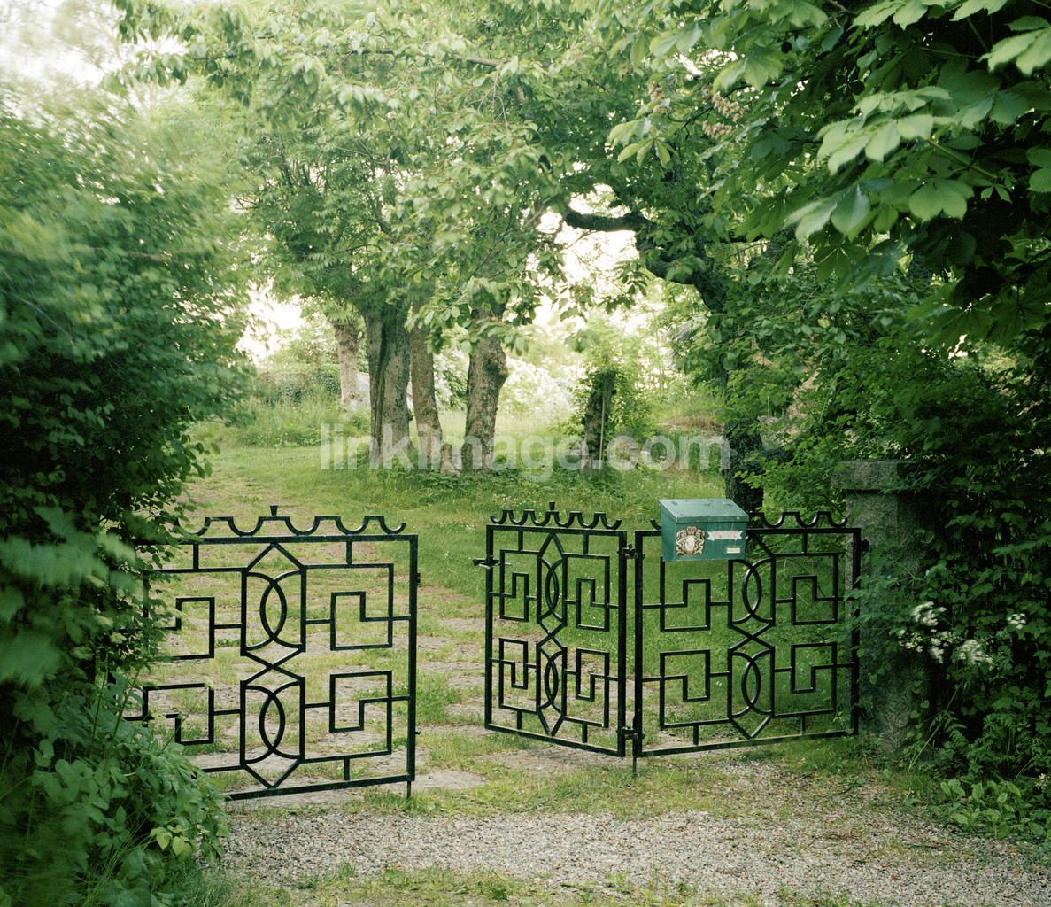 gate, greenery, yard, park and ride, mailbox, open, tree, grass, summer, garden, blank