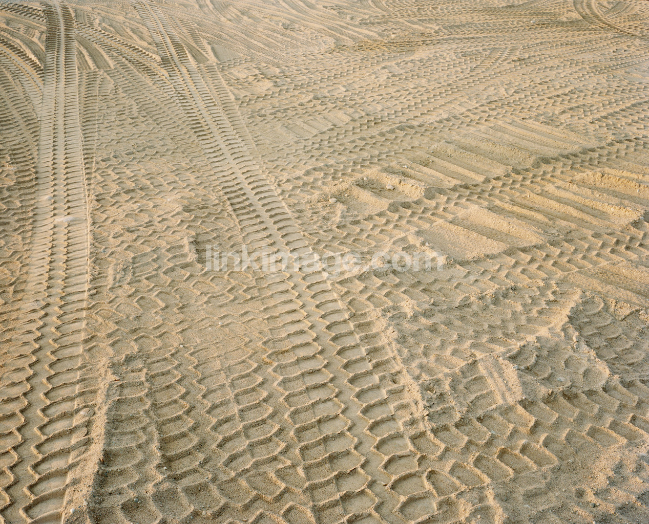 - track, imprint, rut, marks, affect, evidence, sand, gravel, building, work, direction, cross, across, disorder, chaos