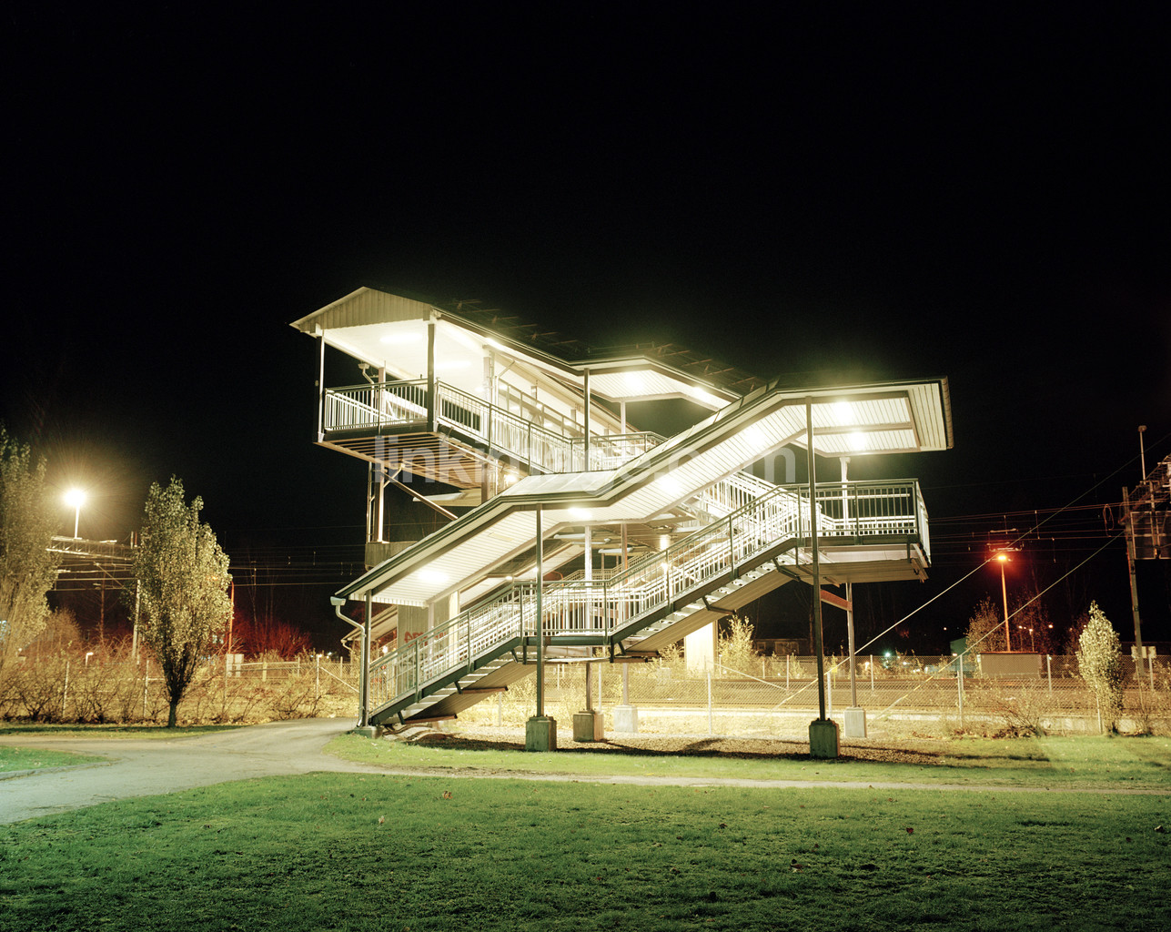 - commuter, station, footbridge, transition, light, vÄsterhaninge, staircase, suburb, night, dark, alone, blank