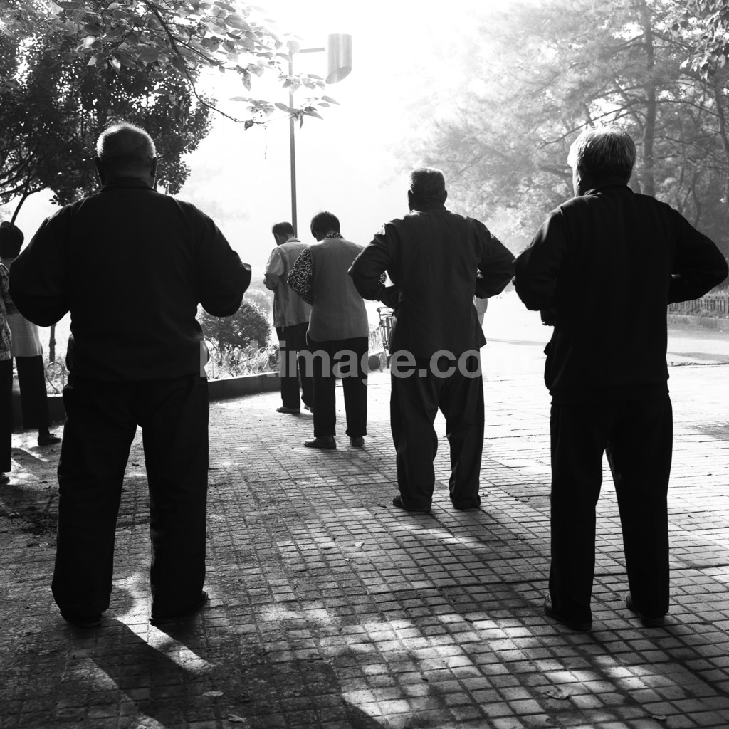 - falun gong, gymnastics, health, morning, dawn, park, male, female, group, meditate, people