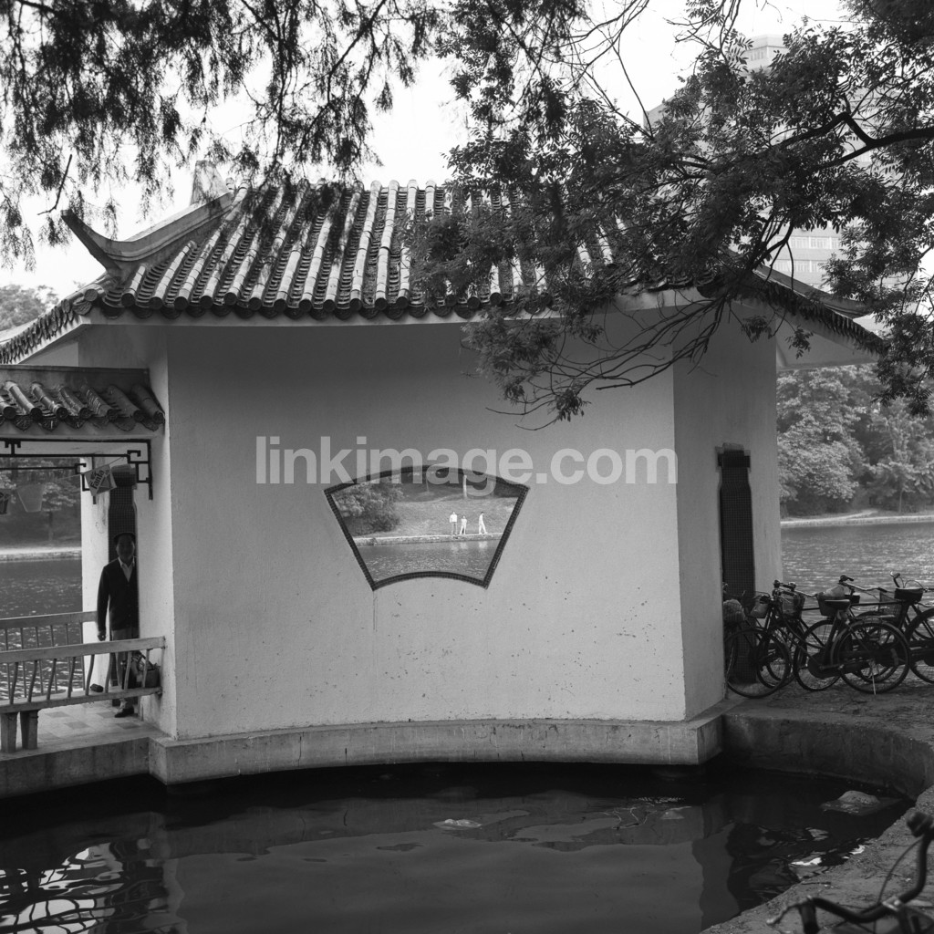 - pavilion, lake, water, male, architecture, window, curious
