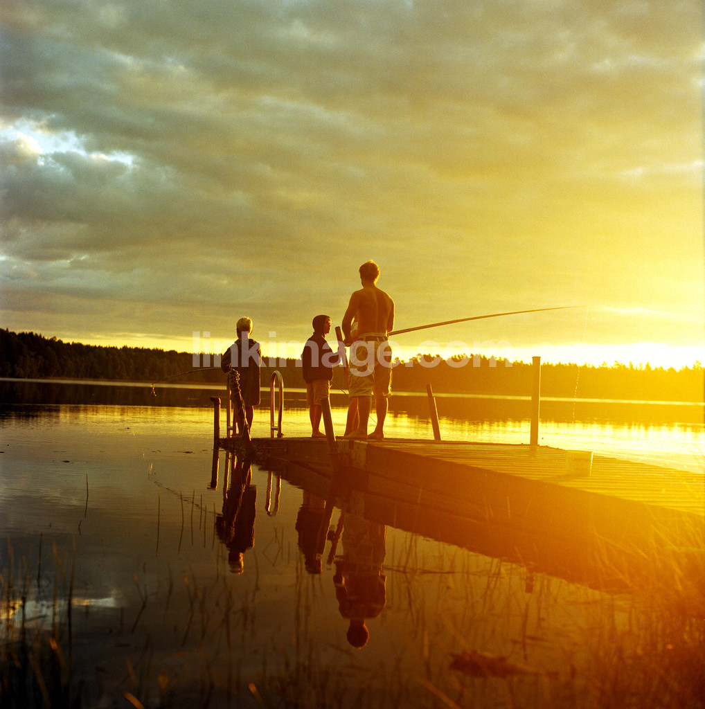 leisure, fishing, fish, bridge, lake, dusk, family, children, summer, evening, dad, father