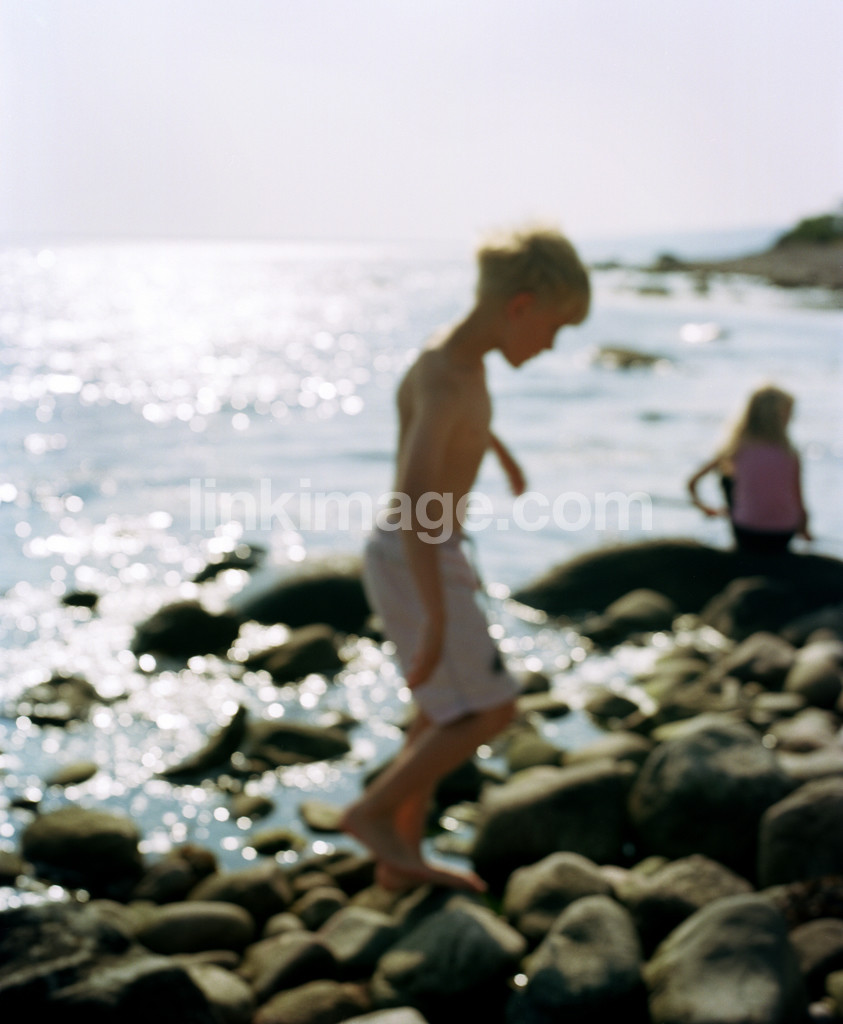 leisure, bath, bathing, shore, rocks, cut, run, children, play, summer