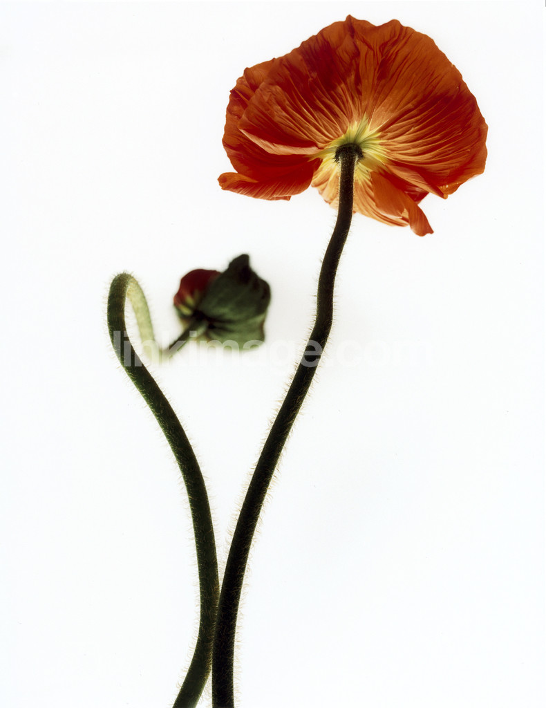poppy, flower, stalk, two, couple, isolated, red, bk213, petal, bud, detail, close-up