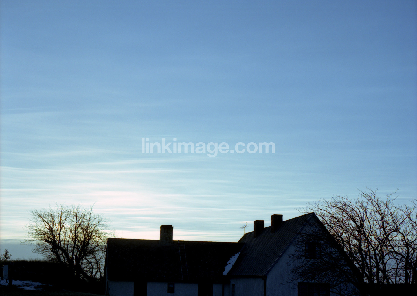 bk1138, sky, dark, house, yard, dusk, evening, ceiling, chimneys, tree, silhouette