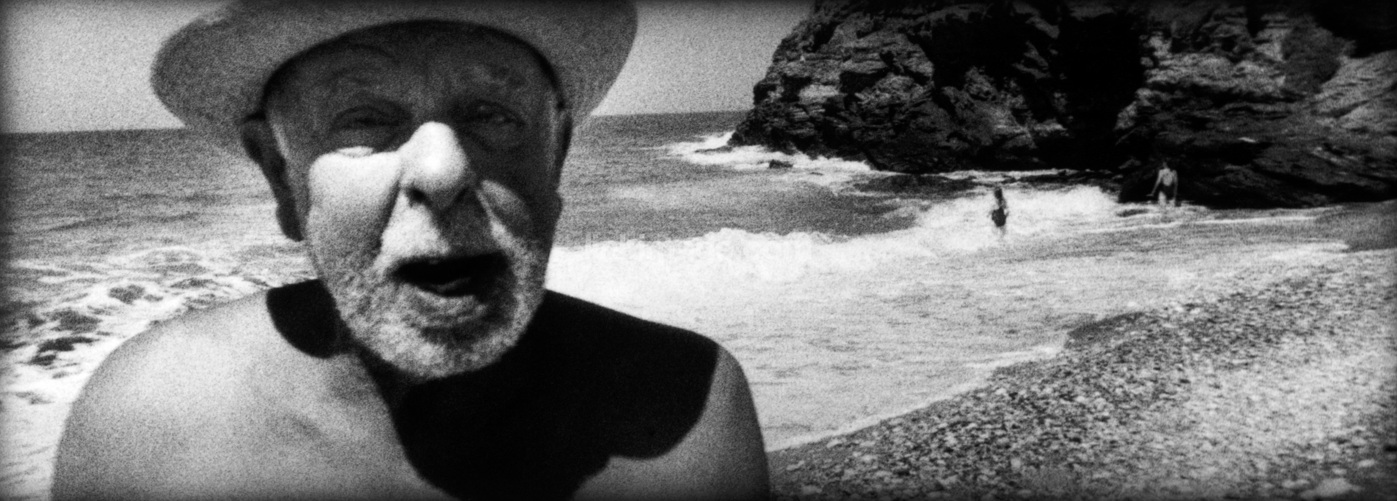 - male, pensioner, shore, sandy beach, holiday, sun, bath, summer, happy, relaxation, rest, hat, rock, sea, water