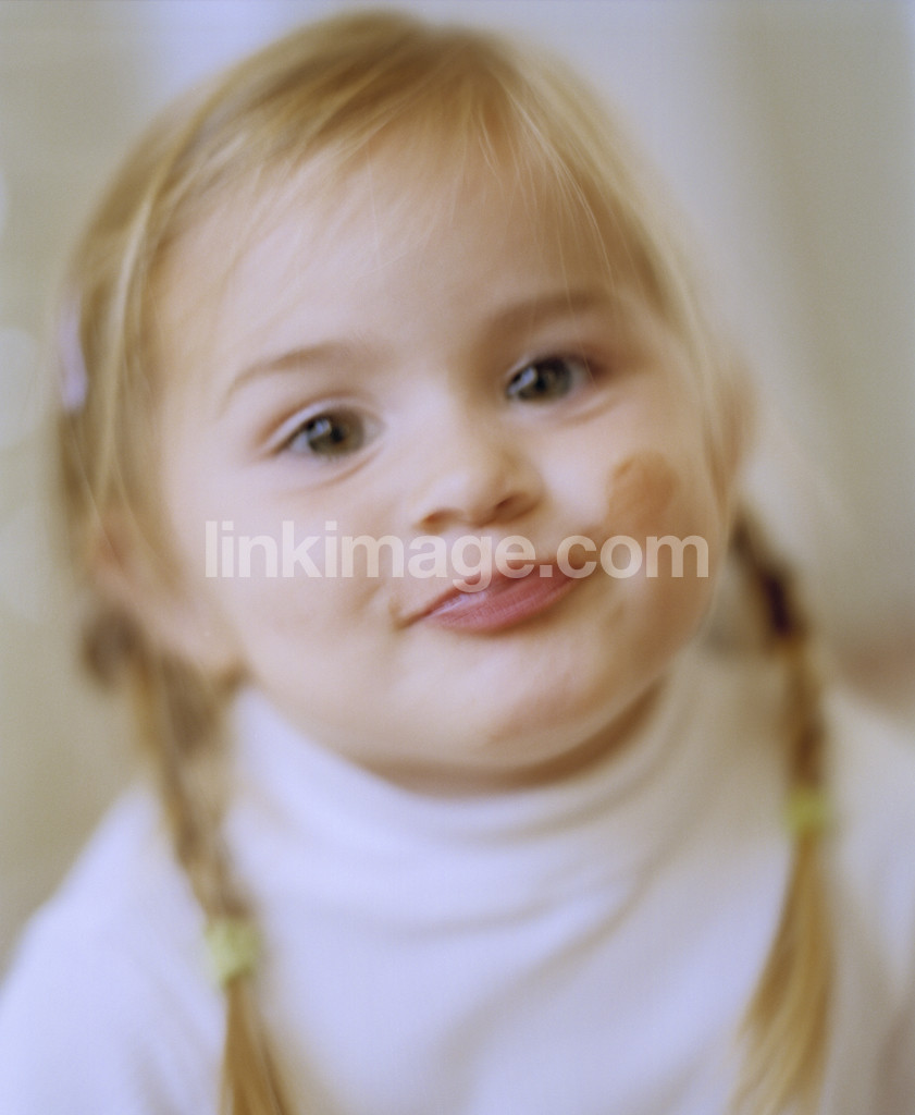 - girl, children, happy, sticky, drinking, dirty, mischievous, movement, braids, spill