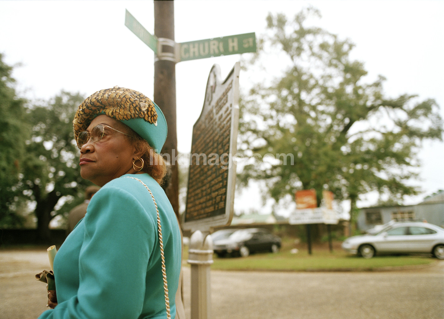 - female, hat, waiting, church, churchgoers, older