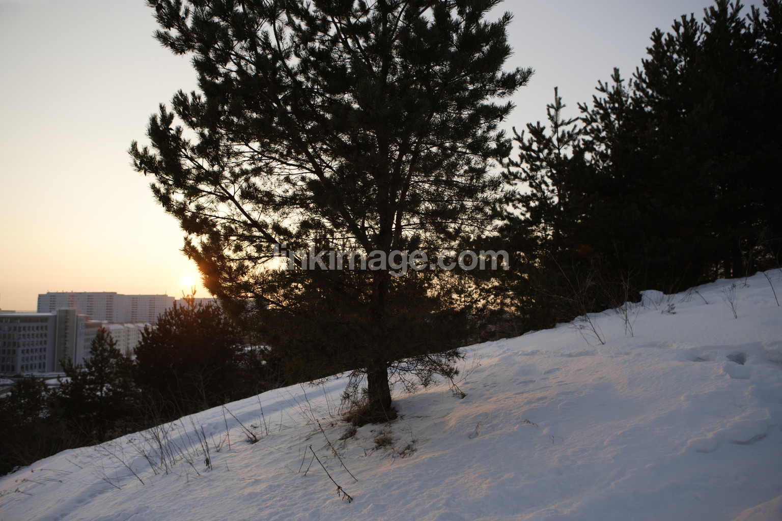 slope, tree, forest, city, snow, winter, cool, cold, evening, dusk, sunset, backlight, silhouette, sl221