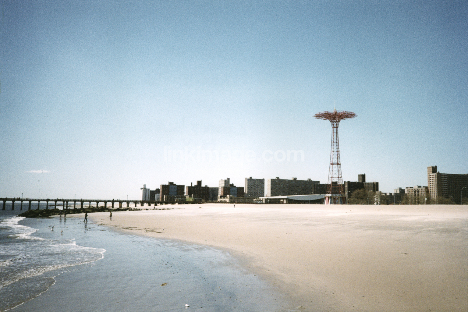 water, shore, waves, bridge, coney, island, sky, summer, aa028, sand, city