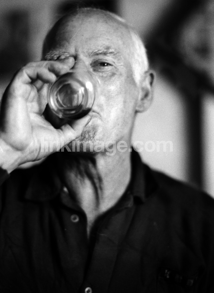 - happy, male, strawberry, glass, older, portrait, drinking, smile, hand