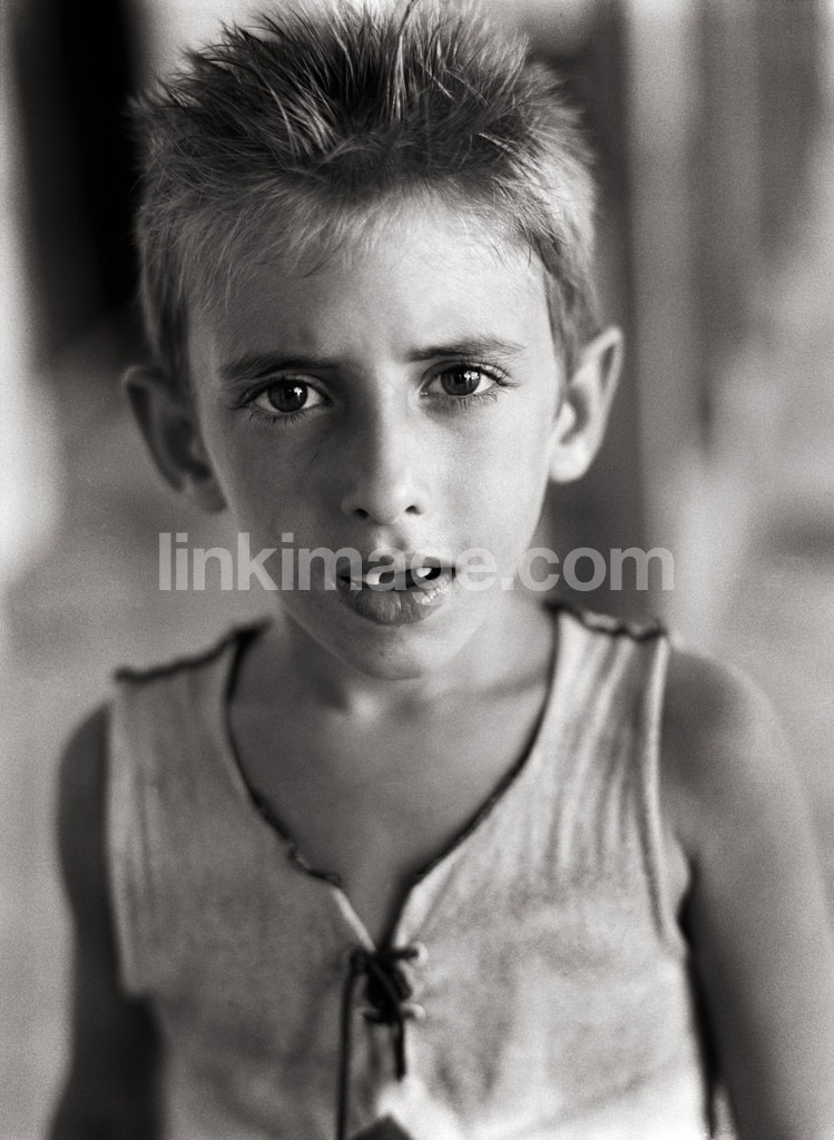 - boy, portrait, toothless, children, linen, close-up, face, gaze, plug, questioningly, serious