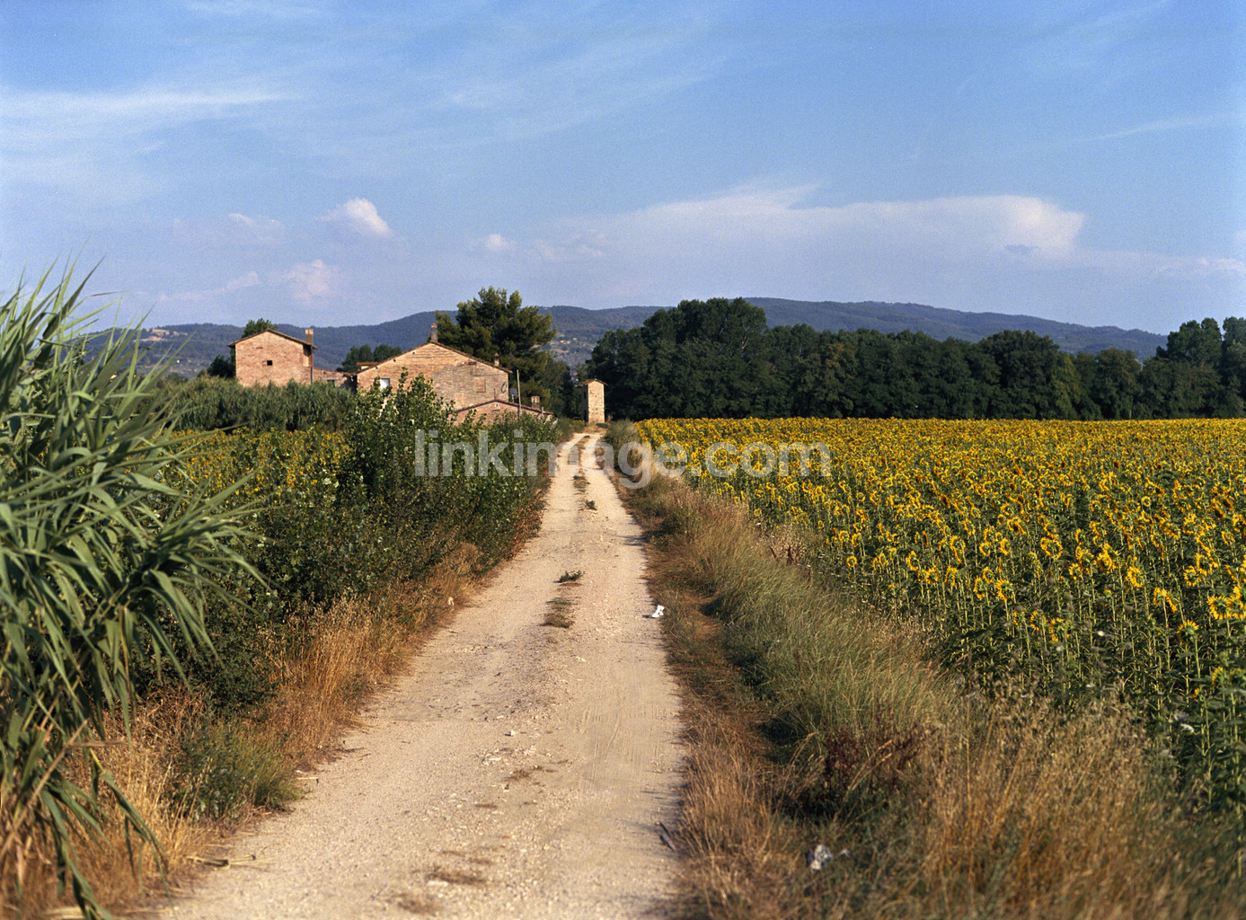 - road, provincial, agriculture, sunflower, country, sunflowers, house, building, spot, nature, go, forest, sky