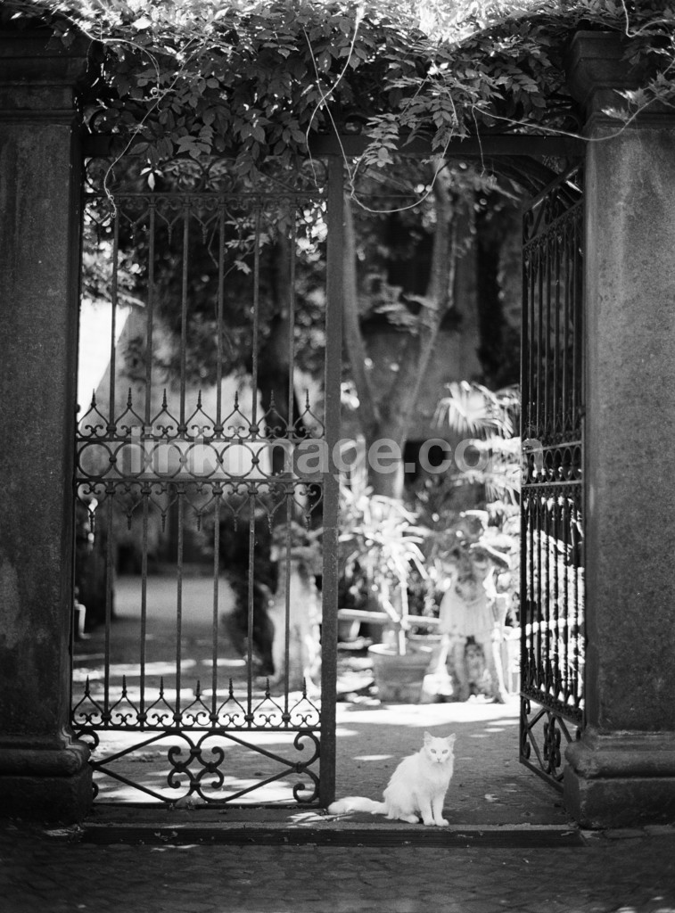 cat, gate, white, waiting, entrance, entrance, animals, pet, pending, sweet, small, buildings