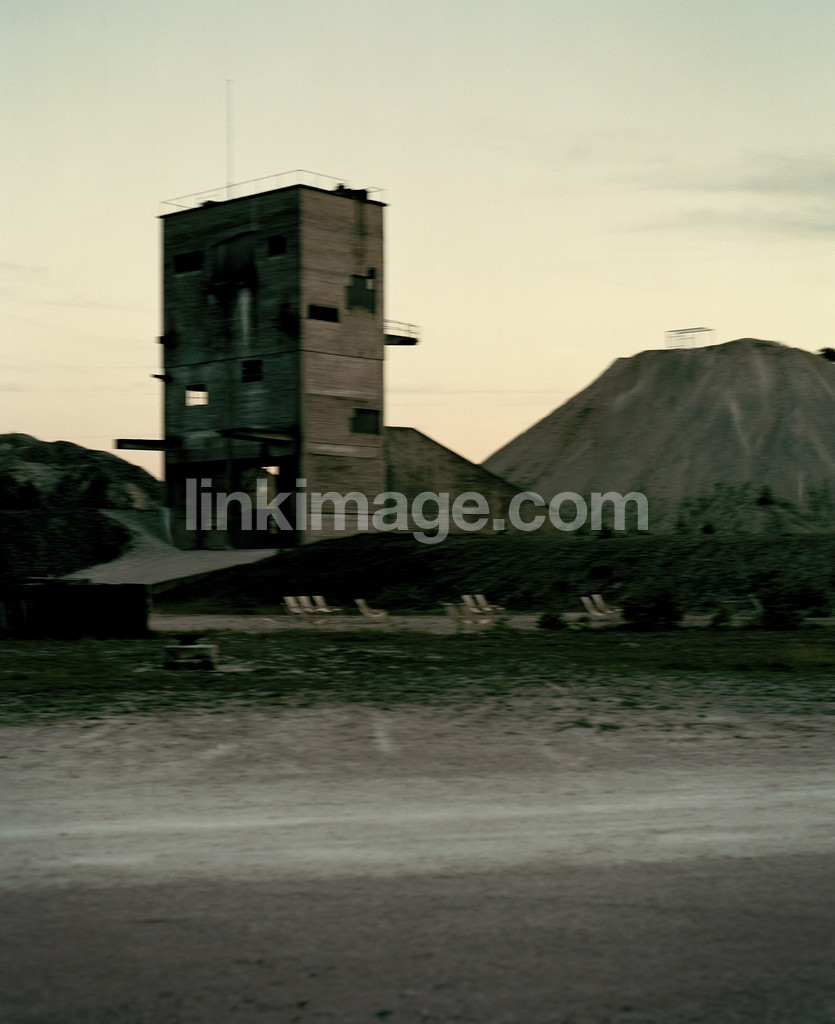 - silhouette, dark, fear, fate, gravel pit, industrial, factory, gravel piles, road, building, dusk, solitary, still, quiet