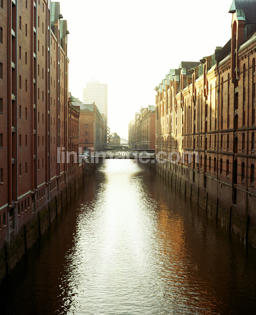 - water, channel, city, house, buildings, narrow, bridge, light, sunny, sun, shadows, sky, travels, transported, crowded