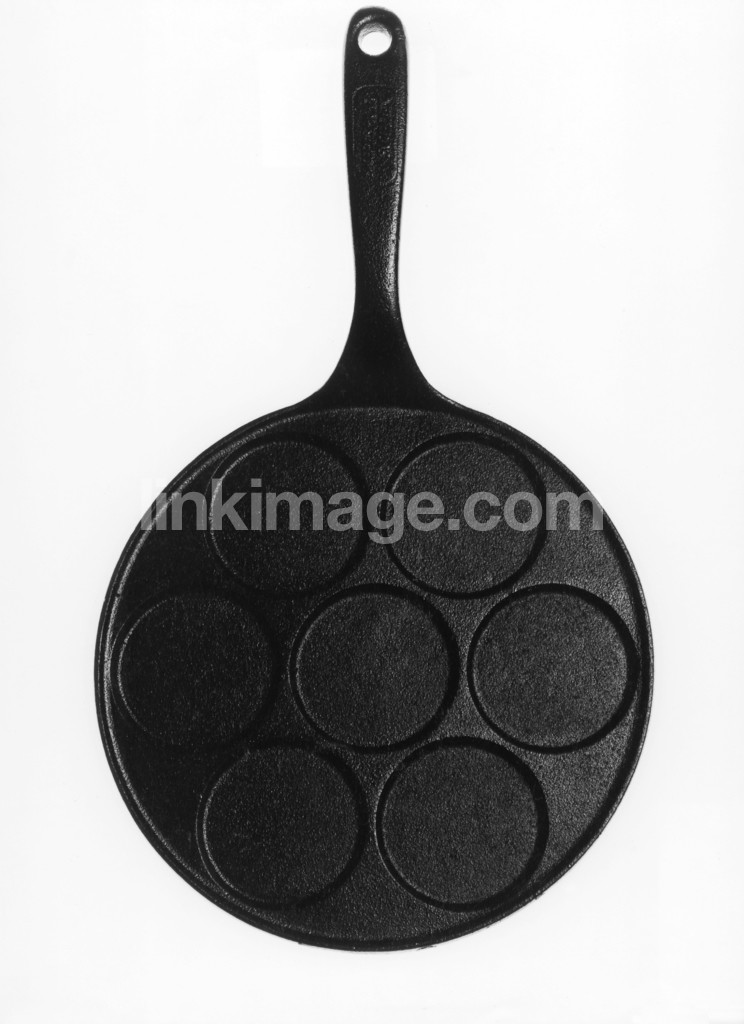 - frying pan, food, black, cast iron, round, graphic, form, platelet mending, studio, studio lights, still life, contrast, white