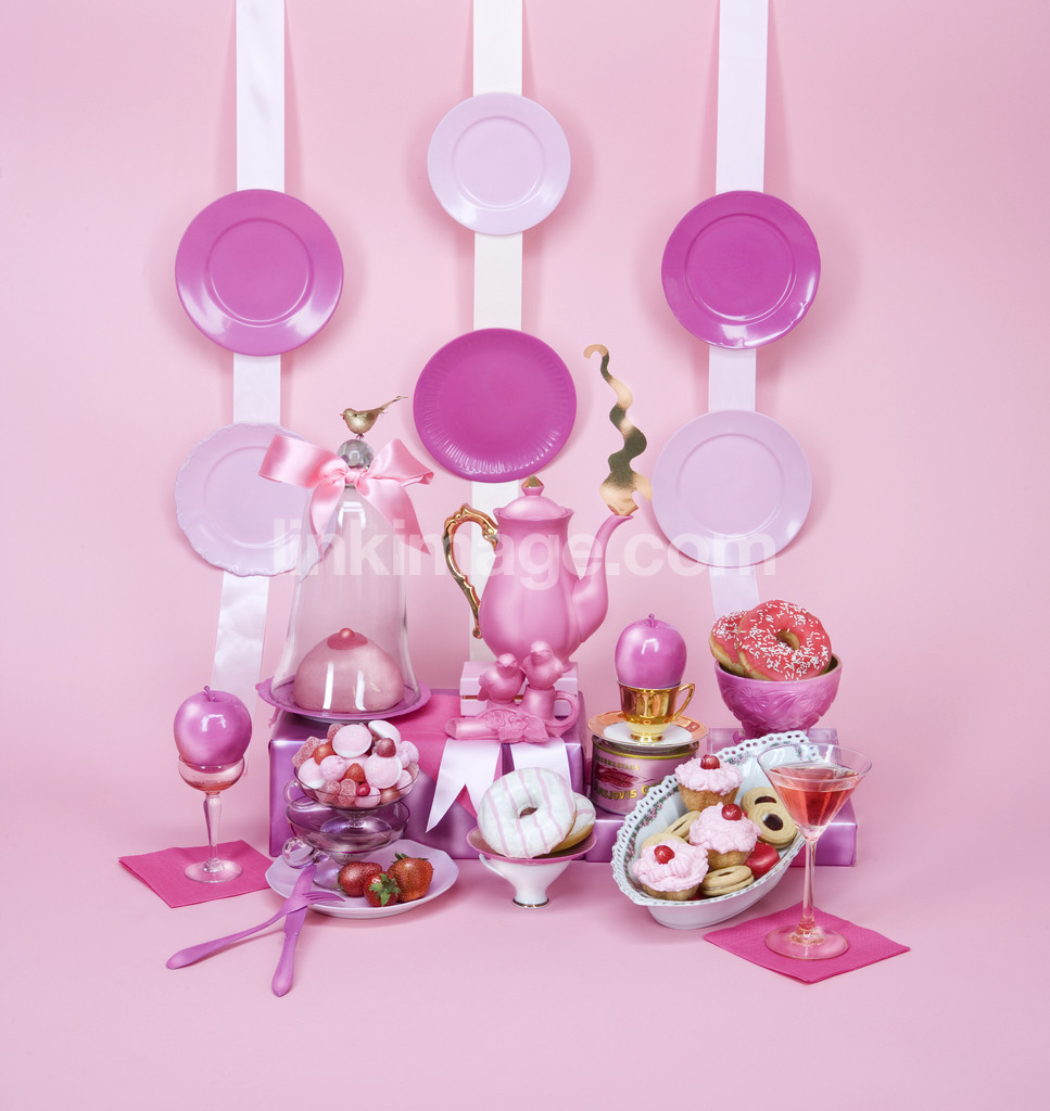 - subject, plastic items, studio, still life, pink, utensils, dishes, barrel, teapot, place, deployed, sweet, cute, pastries, party, cake party