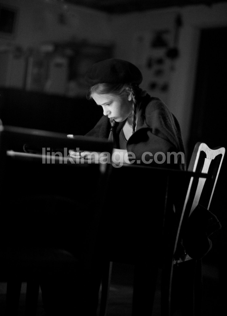 girl, focused, looking, basques, braid, braids, plays, alone, games, room, dark, lit, concentration