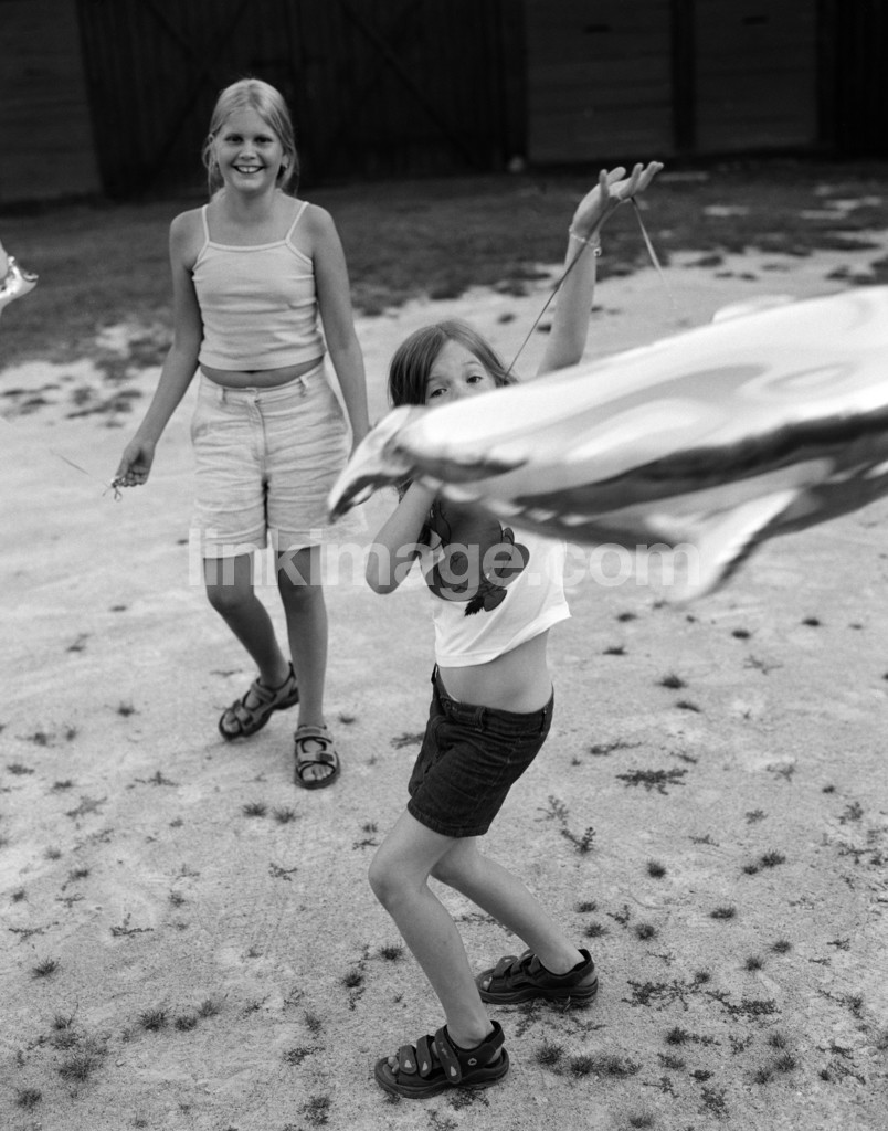 balloon, girls, plays, summer, smile, happy, shorts, sandals, girls, sand, sandy beach, holiday, leisure